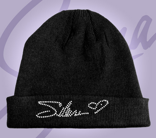 | Black Cuffed Beanie with Selena Signature in Choice of Colored Rhinestones |